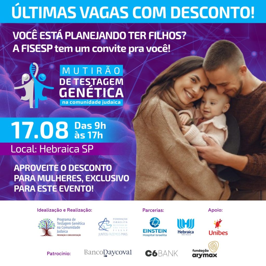 Jovens casais da comunidade judaica, marquem esta data em suas agendas: 17 de agosto! Vem aí o primeiro Mutirão de Testagem Genética
